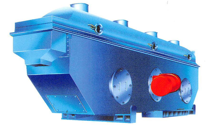 ※ 物料自進料口進入機內,在振動力作用下,物料沿水平方向拋擲向前連續運動,熱風向上穿過流化床同濕物料換熱后,濕空氣經旋風分離器除塵后由排風口排出,干燥物料由排料口排出。